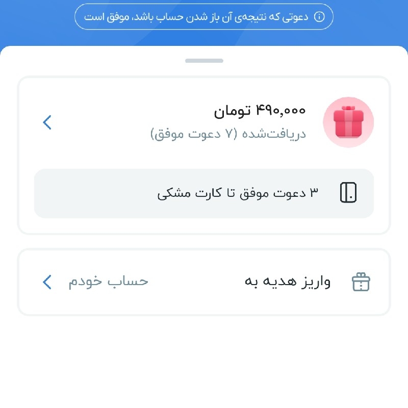 سلام با نصب بلو بانک از مایکت یا بازار و موقع ثبت نام وارد کردن کد معرف یا کد دعوت P2RQBI از مزایای بلو بانک بهره مند بشید حتما حتما کد دعوت P2RQBI رو بزنید تا ۵۰ هزار تومن جایزه بگیرید که قابل برداشتِ و هم میتونید برای اعضای خانواده و دوستان بفرستید وباز جایزه بگیرید و به شانس خودتون از ۱ تا ۳۰ میلیون وام بهتون تعلق میگیره و همچنین کارت بانکی هر رنگی که خواستید رایگان دم منزل بدون پرداخت هیچ پولی تحویل بگیرید فقط یادتون نره کد دعوت P2RQBI رو وارد کنید اگه این کد P2RQBI رو نزنید هیچ کدوم از این جوایز بهتون تعلق نمیگیره فرصتش هم محدودِ پس تا تموم نشده عجله کنید
